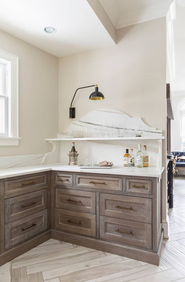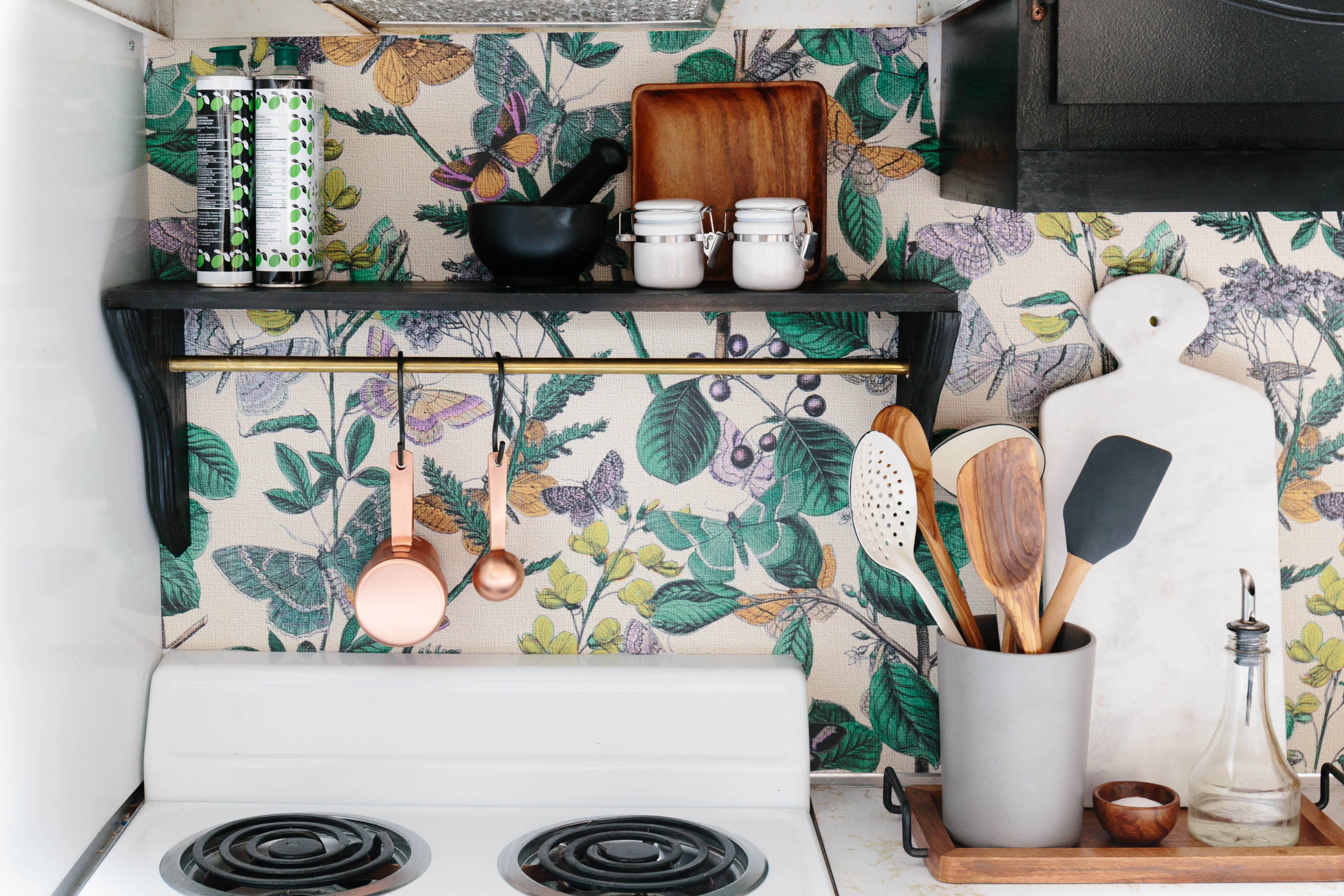 If your kitchen backsplash is nothing more than boring drywall, you can dress it up with upholstery fabric and acrylic sheeting. After cutting both materials to fit between your countertop and cabinets, soak the fabric in a mixture of one part decoupage glue to two parts water, and then gently wring it out. Articles about collection/kitchen on Apartment Therapy, a lifestyle and interior design community with tips and expert advice on creating happy, healthy homes for everyone. Designing a beautiful and functional kitchen can feel overwhelming as there are so many decisions to make, from appliances and cabinetry to lighting